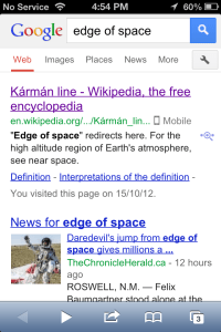 I have a small problem with the science reporting of Felix Baumgartner’s “edge of space” jump. It wasn’t from space, or even the edge of space. The boundary of space is commonly defined as 100km (the Karman Line). I would not consider going less than halfway to space as the “edge of space”.